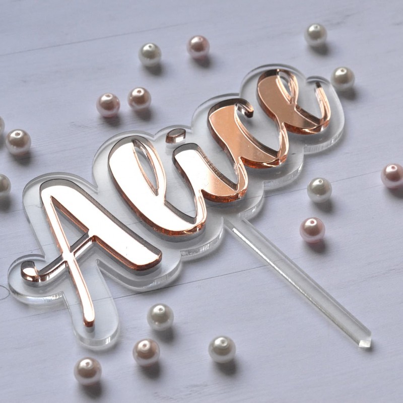 This cake toppers is made from mirror acrylic in our workshop.