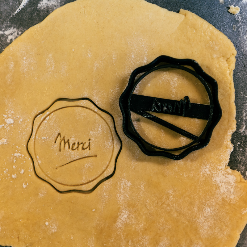 Our cookie cutters are made from PLA, biodegradable plastics derived from renewable resources such as cornstarch, with a 3D printer.