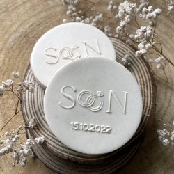 Les tampons à embosser pour pâte à sucre vous permettent d'ajouter vos prénoms et la date en relief sur vos biscuits de mariage, avec délicatesse et raffinement. Vendu seul ou avec un emporte-pièce cercle de 6cm de diamètre.