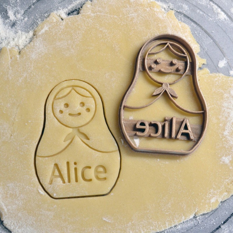 Partez en voyage à l'heure du goûter avec notre emporte-pièce Matriochka personnalisé avec le prénom de votre choix.