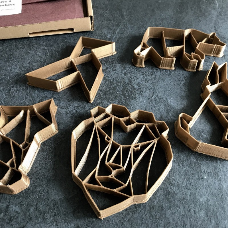 Nos emporte-pièces 3D sont fabriqués à partir de PLA, un plastique biodégradable dérivé des ressources renouvelables telles que l'amidon de maïs, avec une imprimante 3D.