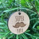 Porte-clé en bois gravé avec l'inscription Super Papa et une moustache.