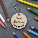 Porte-clé en bois gravé avec l'inscription Merci Maitresse