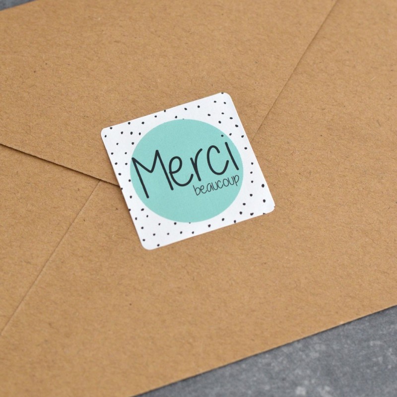 Ce lot est composé de 10 autocollants carrés avec la mention Merci beaucoup!