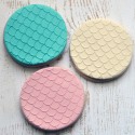 Les tampons à embosser pour pâte à sucre vous permettent de réaliser de délicats motifs d'écaille de sirène ou de poisson en relief sur vos biscuits décorés.